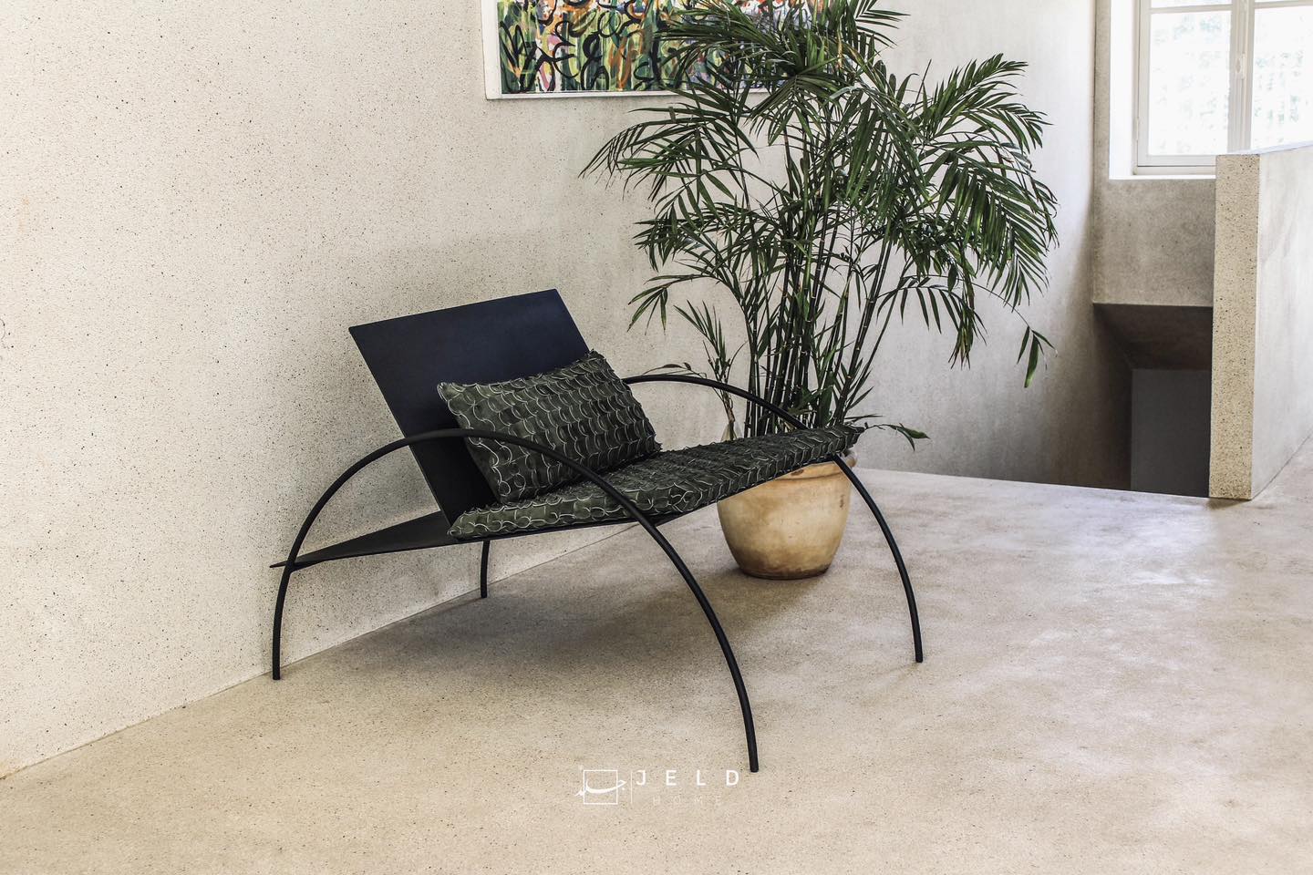 The Olive Chair is made of a combination of powder coated steel & vegetable-tanned cow hide. The collection draws inspiration from the design of olive tree leaves, which boast a simple yet elegant shape that can be depicted by overlapping two circles.