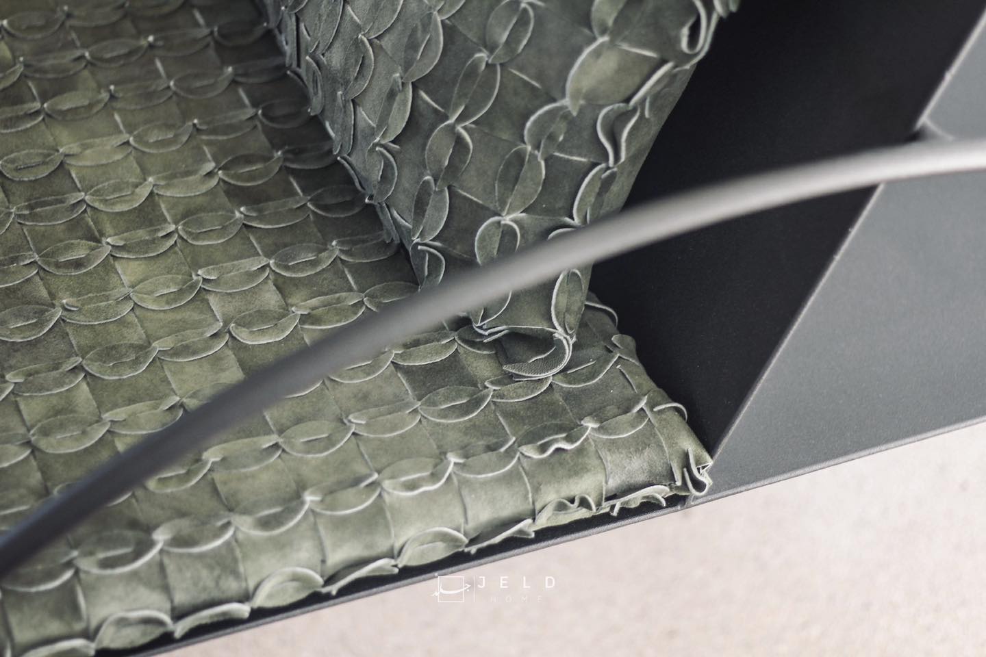 This unique shape has been incorporated into the collection's leather fabric, resulting in a truly distinctive and visually appealing aesthetic.